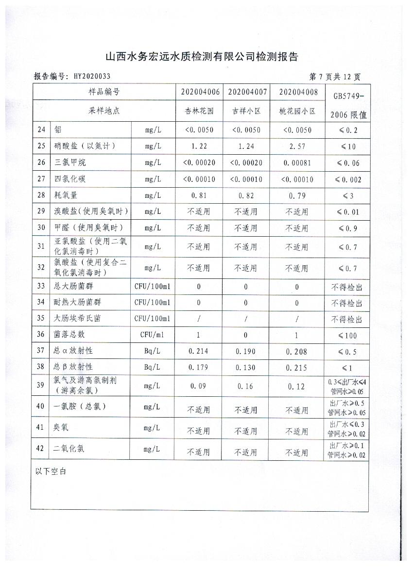 忻州城區(qū)公共供水水源水、出廠(chǎng)水、管網(wǎng)水、管網(wǎng)末梢水2020年4月份水質(zhì)信息公示