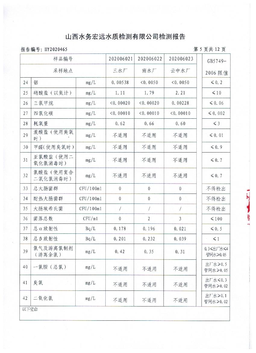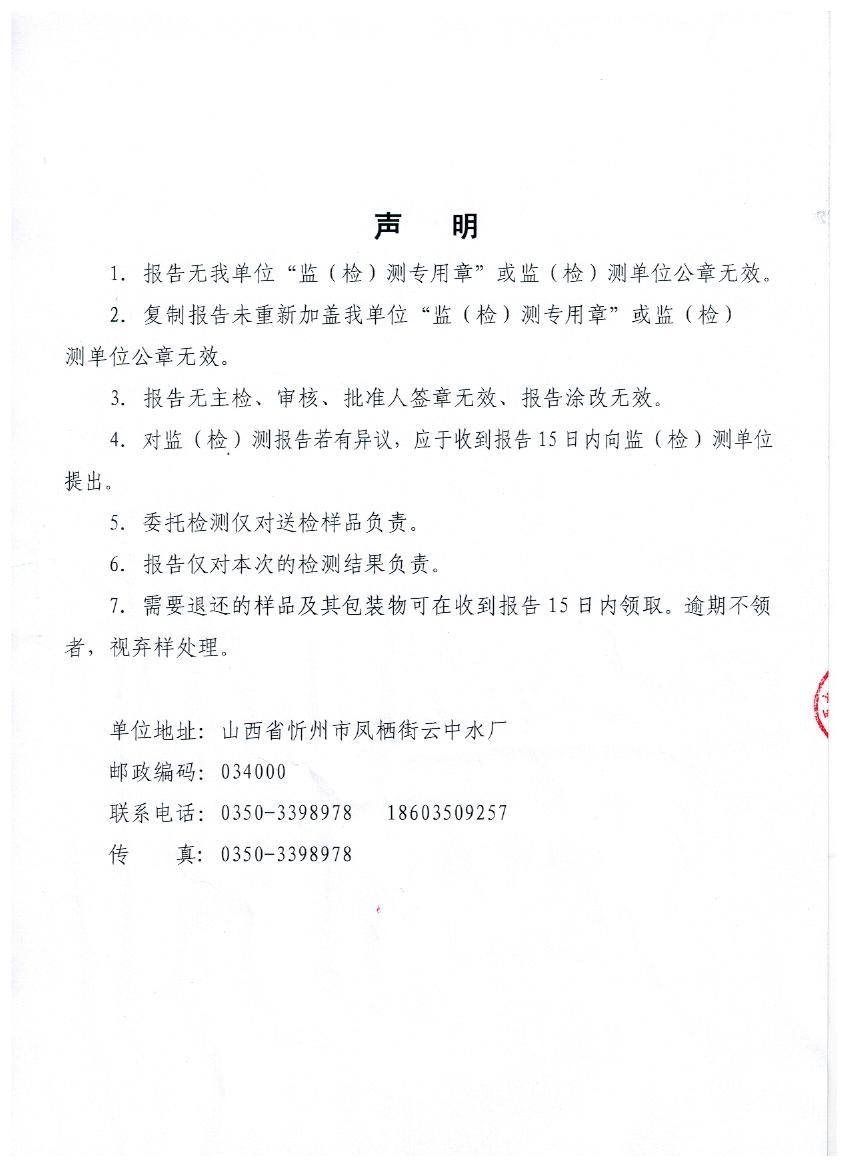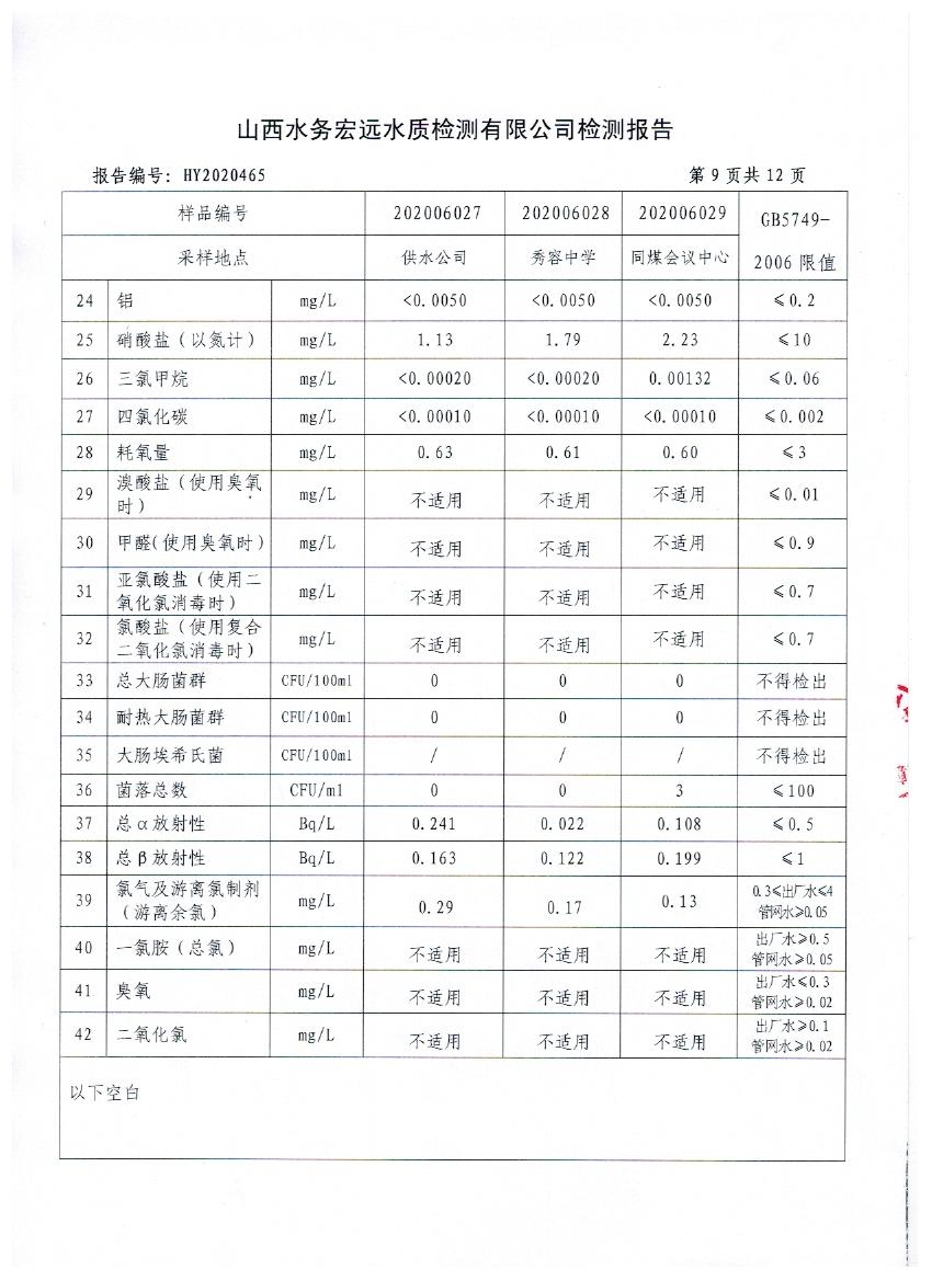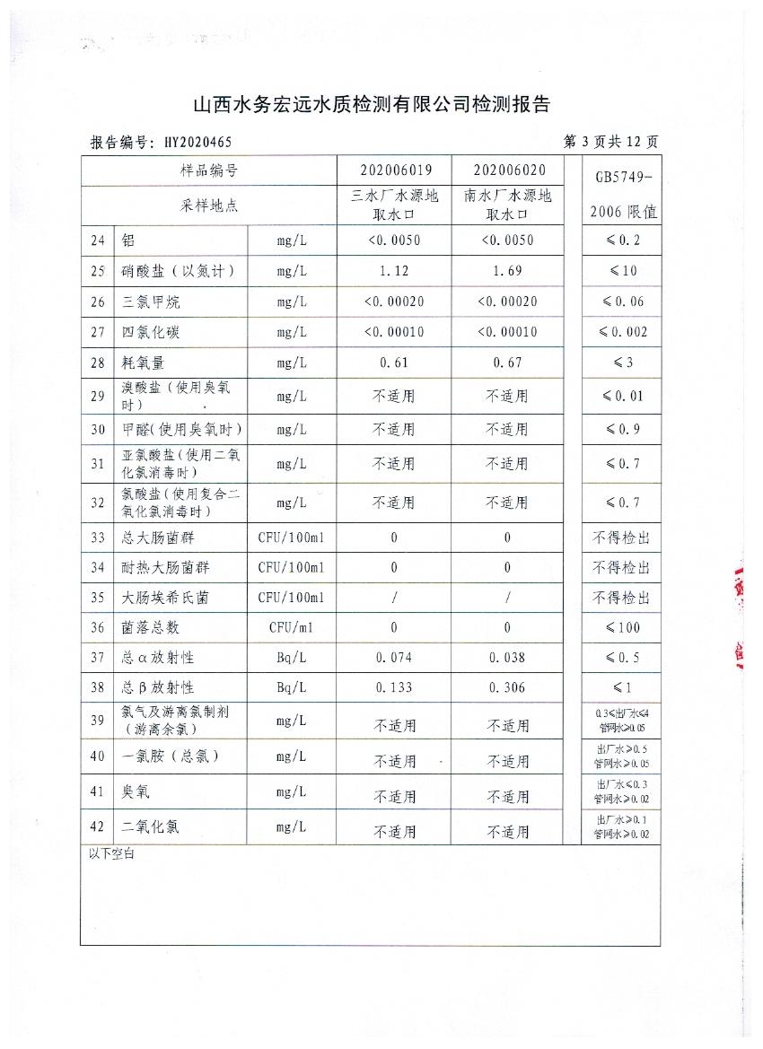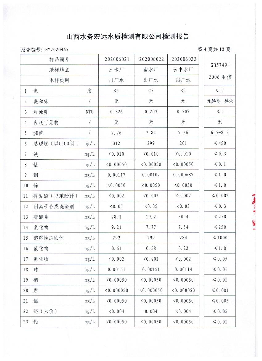忻州城區(qū)公共供水水源水、出廠水、管網(wǎng)水、管網(wǎng)末梢水2020年6月份水質(zhì)信息公示