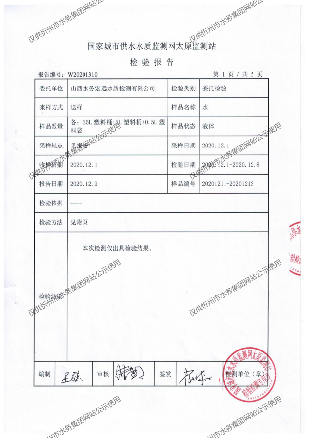 2020年忻州城區(qū)公共供水南水廠(chǎng)、三水廠(chǎng)、云中水廠(chǎng)出廠(chǎng)水106項(xiàng)水質(zhì)全分析