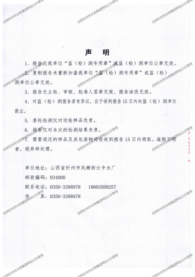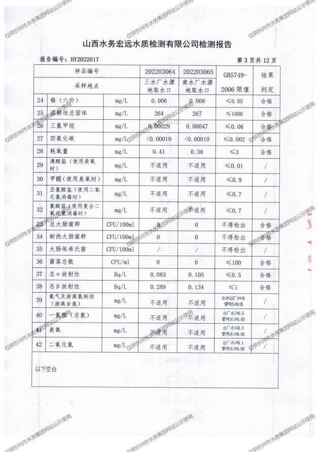 忻州城區(qū)公共供水水源水、出廠水、管網(wǎng)水、管網(wǎng)末梢水2022年3月份水質(zhì)信息公示