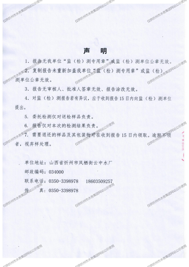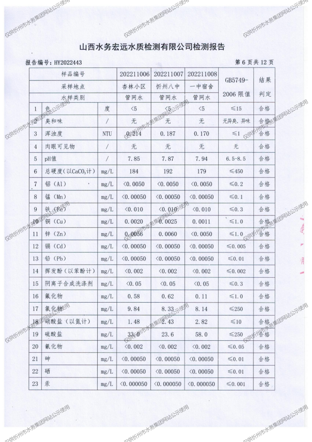 忻州城區(qū)公共供水水源水、出廠水、管網(wǎng)水、管網(wǎng)末梢水2022年11月份水質(zhì)信息公示