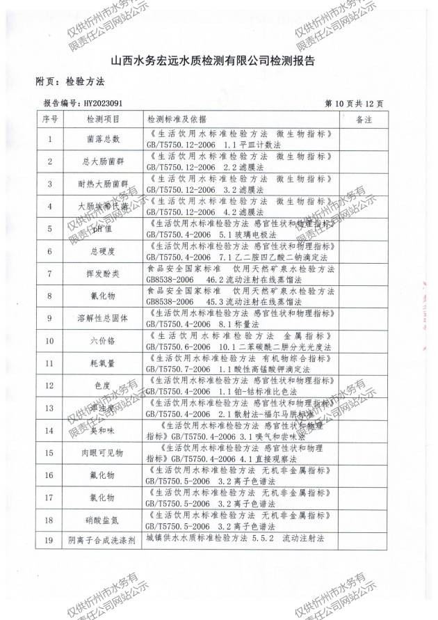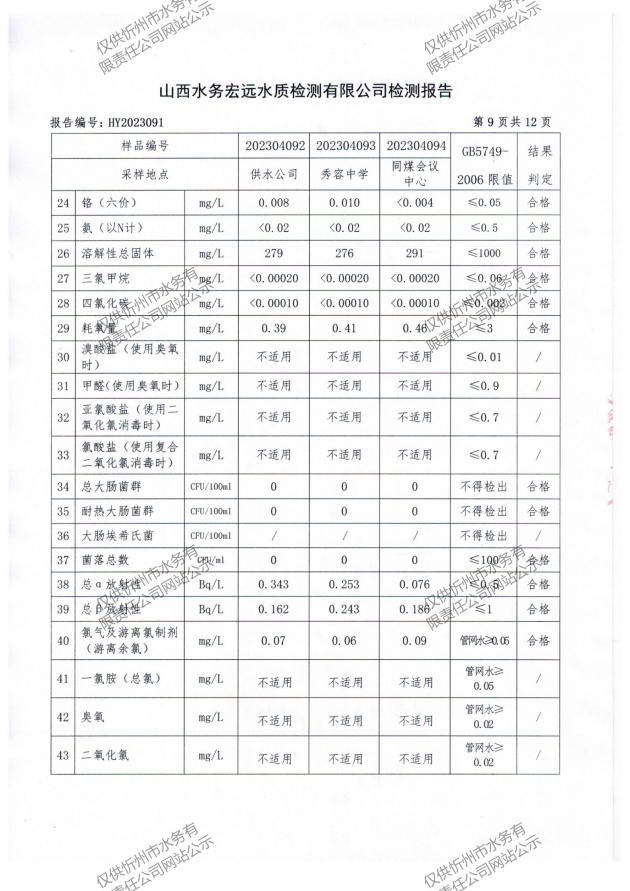 忻州城區(qū)公共供水水源水、出廠水、管網(wǎng)水、管網(wǎng)末梢水2023年4月份水質(zhì)信息公示